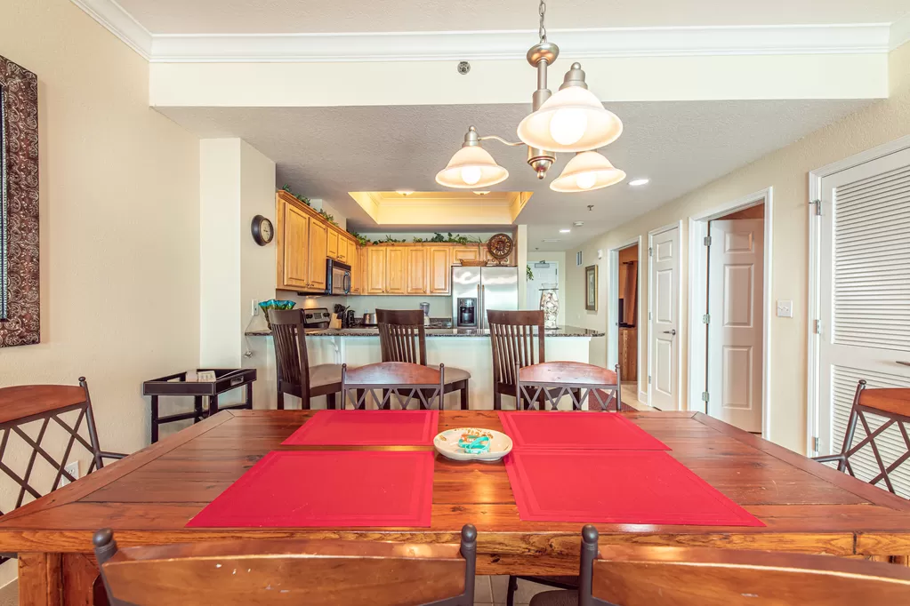 I would, hands down, stay here again. The bedrooms were large, each with their own large full bath. It was very nicely decorated, comfy furniture, sizeable patio. Great location. Easy to go from the beach to the pool/lazy river to the condo whenever we got hungry! Good Italian Ice place right by the pool. Plenty of restaurants less than a 10 minute drive. Grocery stores close too! We cooked in the condo most days which made it easier with the 5 kids we had under 10 years old!